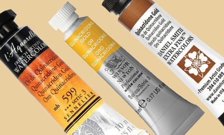 The most gorgeous Quinacridone Gold was the original single-pigment transparent Daniel Smith version — until, sadly, their stockpile of long-discontinued PO49 ran out a few years ago.
