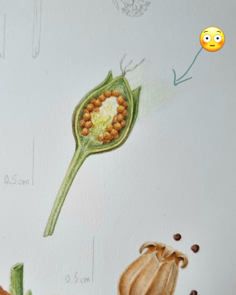 I went back to the nature reserve later on to see the seeding inflorescences. I did this so that if I had time to include this plant in my RHS entry, I would have more information available about its lifecycle. It would be a different style composition to this painting here as I have done my RHS paintings in a more scientific way. I do now have all the necessary information and research to hand though, just in case! The seeds are very small, fine and delicate, almost like dust. see microscope image below.