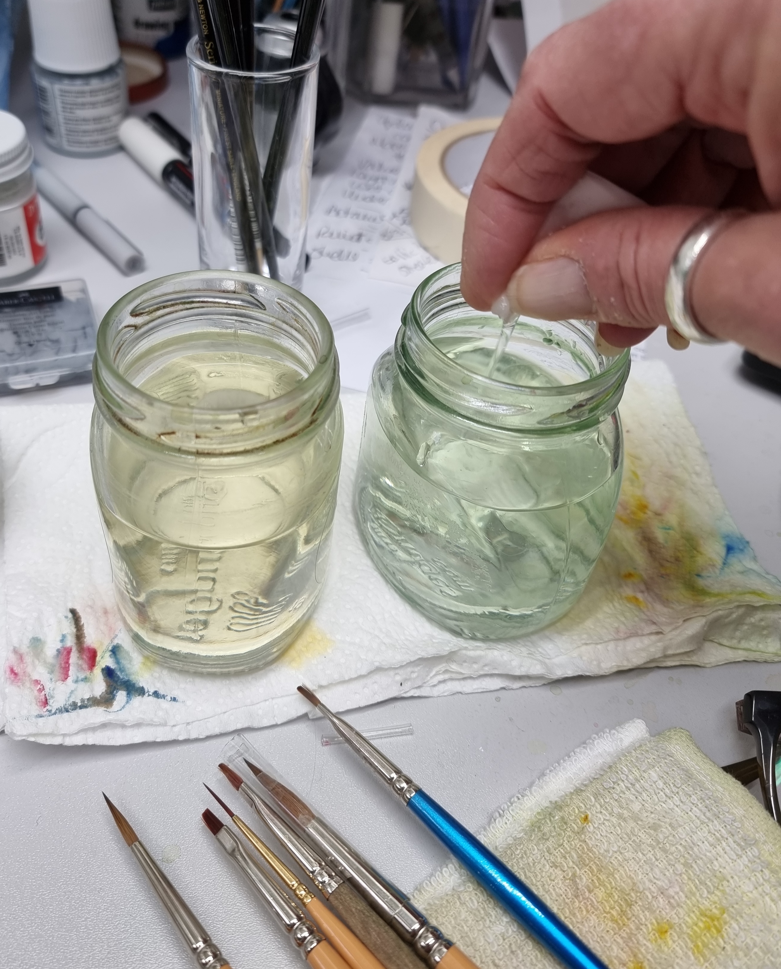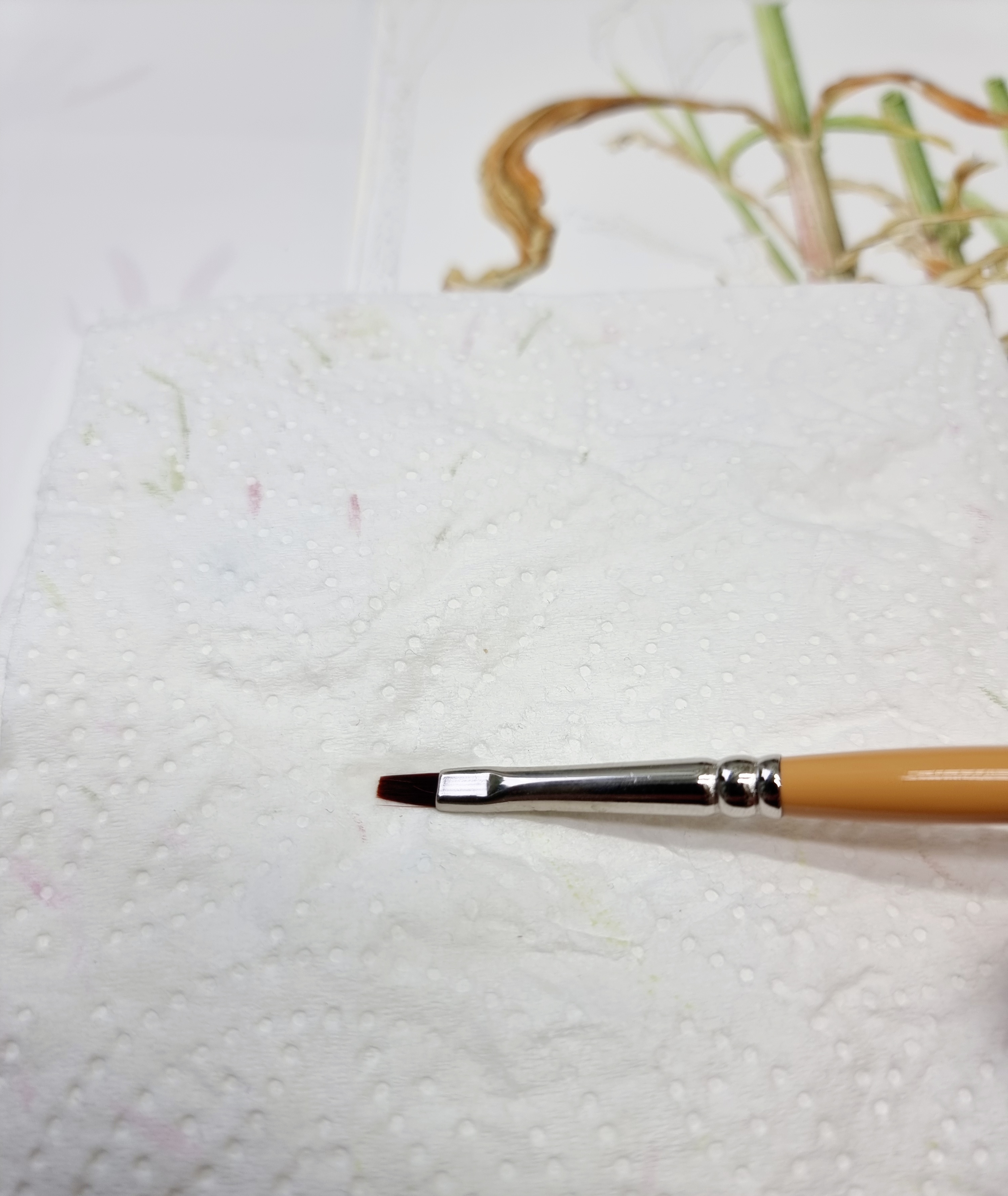 To tidy edges : Rub the side of the brush gently just outside the edge of the painted area then dab with kitchen roll.