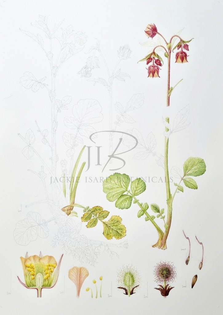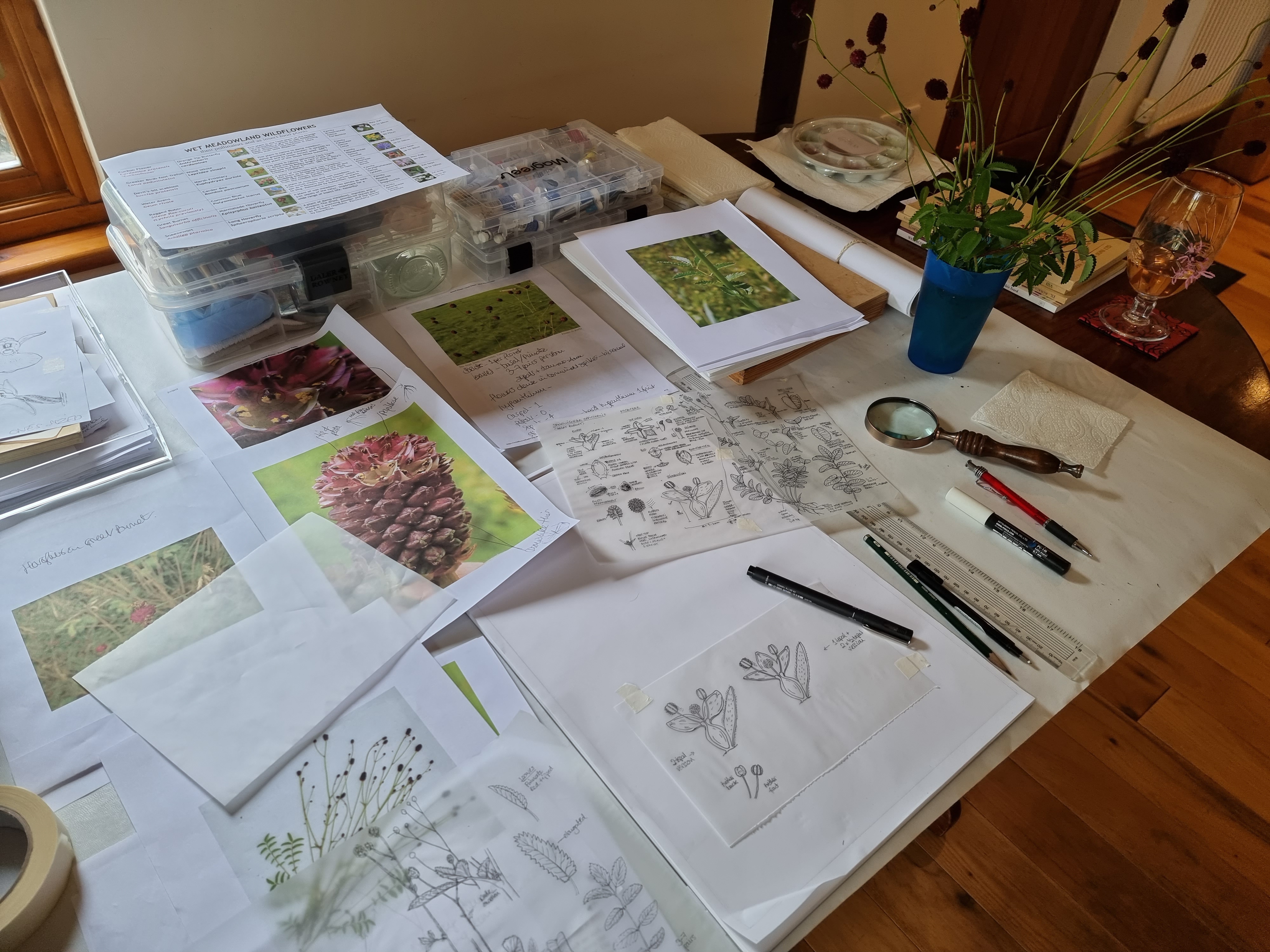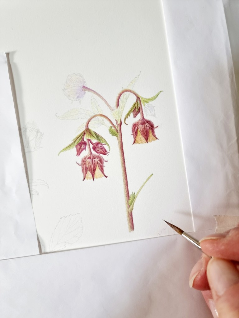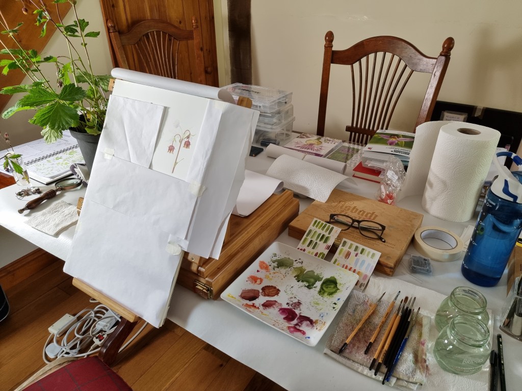 My workspace whilst working on Geum rivale (Water Avens) for my RHS project