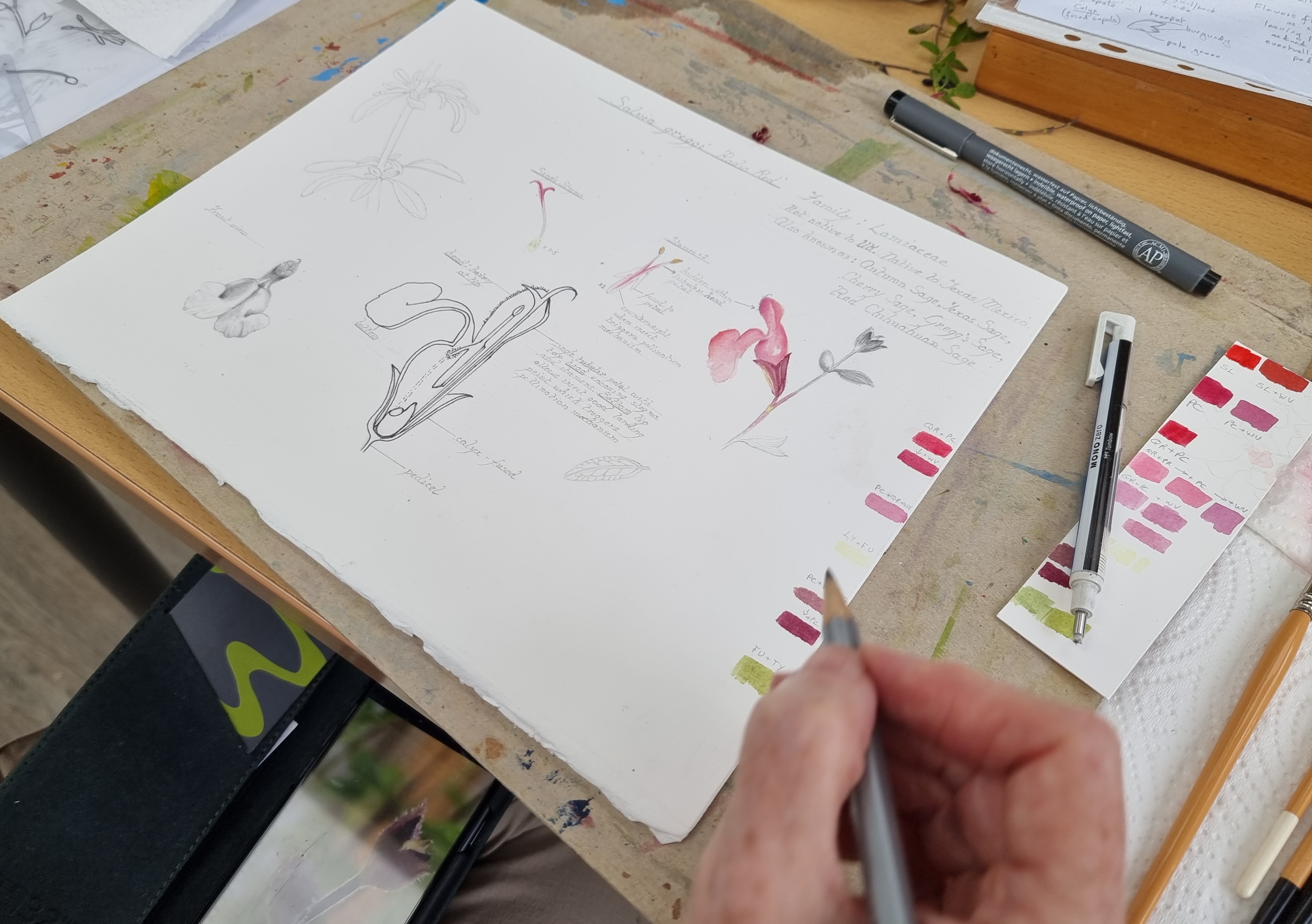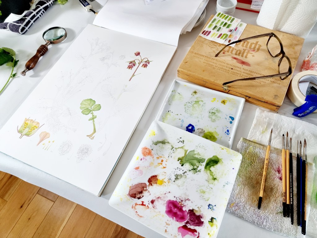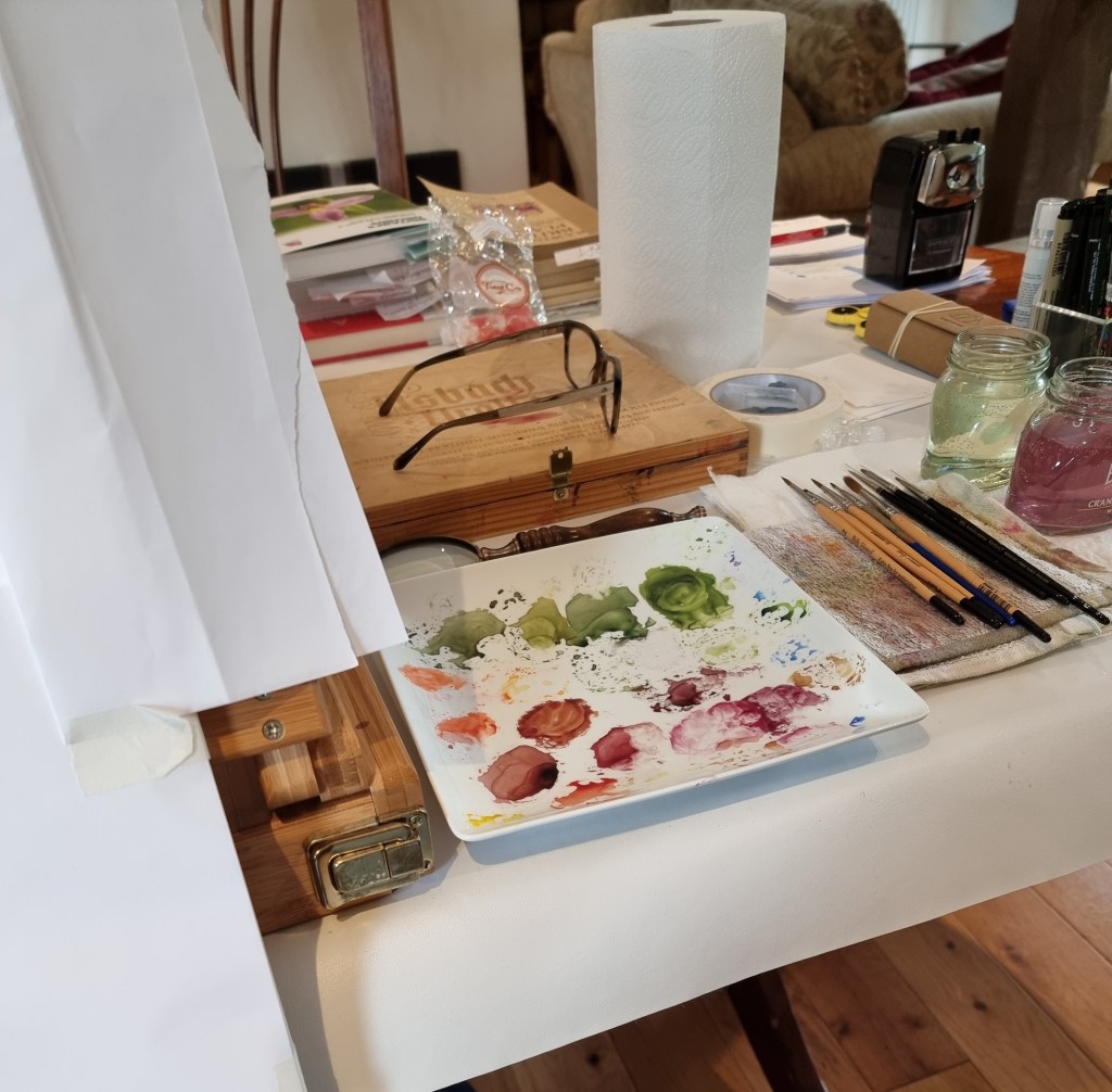 My workspace whilst working on Geum rivale (Water Avens) for my RHS project