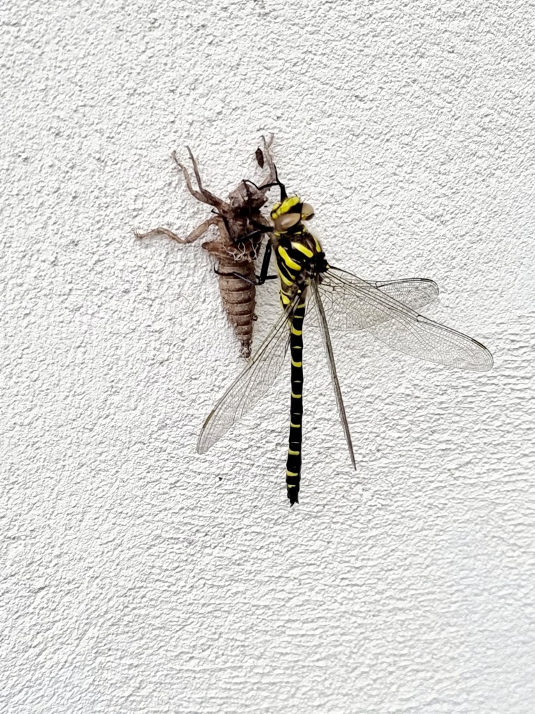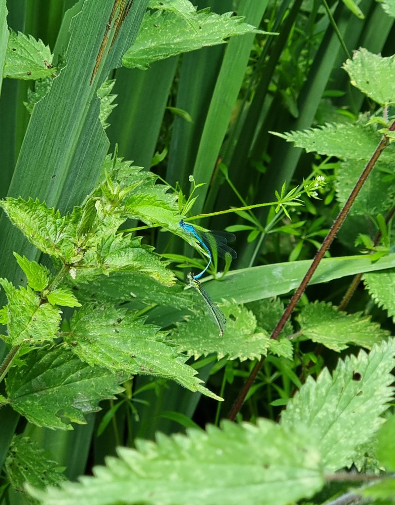 I particularly enjoyed painting the insects. This is the start of the bright blue damselfly. No black paint was used, this black is a mix of Indanthrene Blue, Permanent Carmine and New Gamboge. I prefer to mix my own black as there are many versions of black too, warm and cool! This is a warm black mix that compliments the bright vivid cool blue.